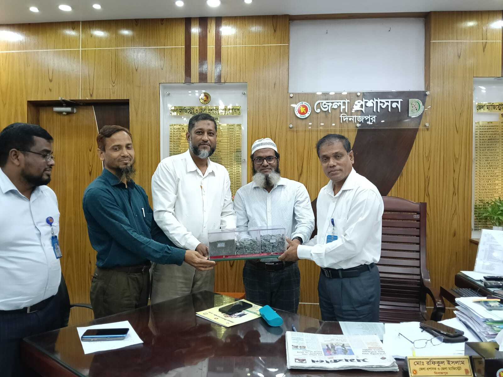 মধ্যপাড়া গ্রানাইট মাইনিং কোম্পানী লিমিটেড (এমজিএমসিএল)-এর পাথর, দিনাজপুর জেলায় ব্যবহার জোরদারকরণের বিষয়ে জেলা প্রশাসক, দিনাজপুর মহোদয়ের সাথে সাক্ষাৎ ও শুভেচ্ছা স্বারক প্রদান।